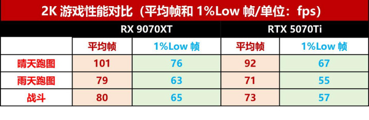 实测数据出来,截止挺特殊义:RX 9070 XT 在这一块如实是把 RTX 5070 Ti 给比下去了。在比较简短的“好天跑图”场景里,9070 XT 平均帧鲠平直突破了 101 帧,能够开端了敌手 10%,何况最低帧也稳得多,玩起来更顺滑。就算到了测验性能的“雨天”或者“交游”方位,天然两张卡的帧数都掉了点,但 9070 XT 照旧稳稳地保执着 10% 到 11% 的上风。 最让东谈主偶然的是,如若拿跟 9070 XT 价钱差未几的 RTX 5070 来比,那差距就更显着了。在雨天场景下,RTX 5070 平均也就 55 帧摆布,比 9070 XT 少了整整 24 帧,这差距快接近 40% 了。同价位这样一比,9070 XT 真实认如实不错说是“碾压”级别的了。