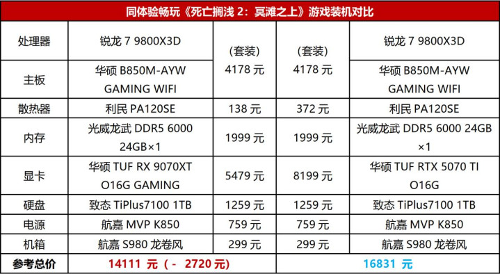 按照咱们的测试圭臬,组建一套畅玩《死亡搁浅2:冥滩之上》的主机,只消换掉显卡,其他建设不变,价钱差距竟然拉到了2720元!这是什么见识?哪怕现在内存和固态加价涨得再凶,省下来的这笔钱也够你平直“毕业”——要么上一套32GB DDR5内存,要么平直拿下2TB PCIe 5.0固态硬盘。 如果你只在乎游戏性能,那9070 XT的确值得要点洽商。超强性能加上超廉价钱,省下的预算还能反哺其他硬件,让整机性能更进一竿。关于追求极致性价比的装机党来说九游ninegame,这就是咫尺的“优质谜底”。 乐鱼体育官方网站 |