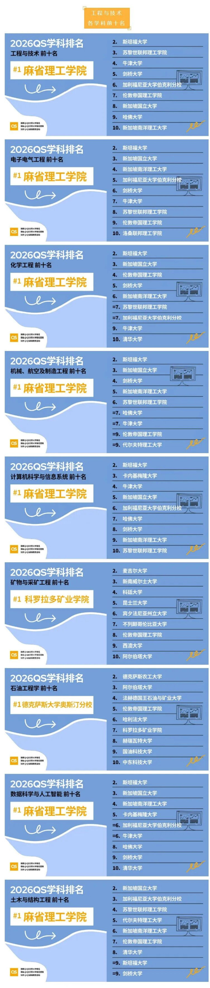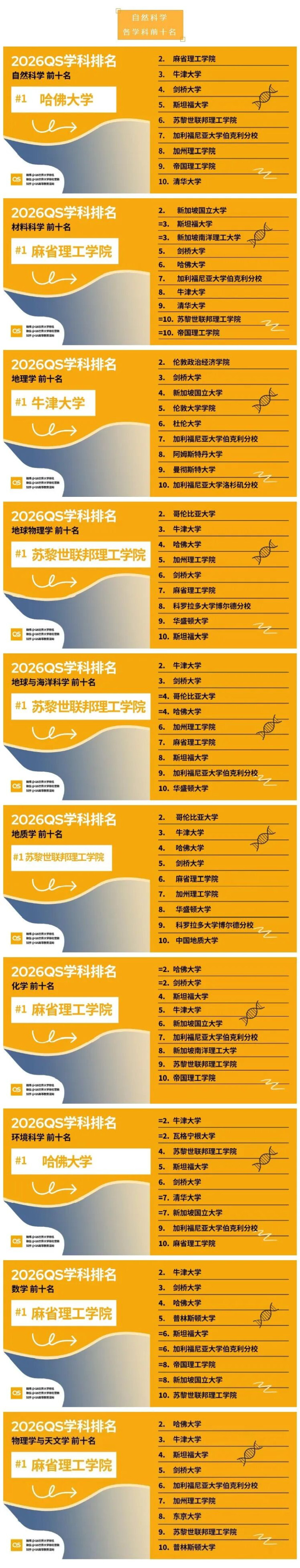 QS高管示意,这份名次反应出一个很光显的趋势:寰球高档西宾正在变得越来越“卷”,同期也越来越细分。 固然好意思国、英国以及部分欧洲国度在许多学科上依然占据主导地位,但亚洲、中东和拉好意思地区正在快速崛起,举座竞争阵势正在发生变化。 寰球总体趋势大盘货 从具体说明来看,列国皆有亮点。 好意思国依旧是最大赢家,共有37个学科寰球第一、88个参加前三,哈佛、MIT和茱莉亚说明杰出。 英国举座有40%的学科名次飞腾,拿下15个寰球第一和63个前三名。 中国的前10学科数目比拟2021年杀青翻倍,并在古典学与古代史规模处于最初位置,复旦大学和北京大学差异号轮番2和第3。 澳大利亚在体育关系学科上上风物显,昆士兰大学和悉尼大学差异位列寰球第2和第3。 新加坡说明杰出亮眼,共有42个学科参加寰球前10,是寰球第三多,同期亦然跳动最快的国度。 印度的跳动也很光显,自2024年以来参加前50的学科数目翻倍,达到27个,主要由印度矿业大学和艾哈迈达巴德解决学院带动。 瑞士则成为欧洲最强国度,共有12个学科参加前5,其中苏黎世联邦理工拿下3个寰球第一。 意大利通过罗马第一大学和博科尼大学普及了前10占比,其中罗马一大在古典学寰球第一。 西班牙有10个学科创历史最好名次,参加前20的数目也达到新高,马德里康普顿斯大学牙科名轮番11。 葡萄牙是欧洲跳动最快的国度(+12%),由波尔图大学领跑。 加拿大方面,不列颠哥伦比亚大学上榜学科数目寰球最多,麦吉尔大学在矿业工程名次寰球第2。 德国最高名次来自海德堡大学(古典学第8),柏林夏里特医学院则是寰球医学规模跳动最快。 法国在社科规模说明杰出,政事学和商科差异由巴黎政事学院和INSEAD领跑。 中东方面,沙特的法赫德国王石油矿产大学在石油工程规模依然强势(寰球第5)。 非洲由南非领跑,开普敦大学和威特沃特斯兰德大学说明最好。 拉好意思地区则是圣保罗大学名次最高,而厄瓜多尔成为跳动最快的国度。 2026QS寰球大学学科名次一览 五大规模各学科前十名如下: