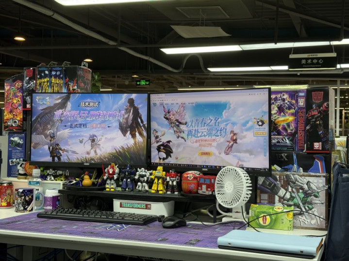 (不知民众此次测试首选哪个功绩?) 原来合计备战首测的花样组会是全员紧绷、懊悔严肃的景象,但走进办公区后却令东说念主不测:锐我科技团队的责任氛围显得缩小而鲜嫩。 每个东说念主的工位上都摆放着可爱的手办与旁边,充满了生涯气味。 尤其是一位小哥的工位,被变形金刚模子团团包围,尽显资深模子爱好者的本体。这那里是来上班,分明是来公司拼模子的!这种恣意有度的责任景象,让东说念主印象潜入。