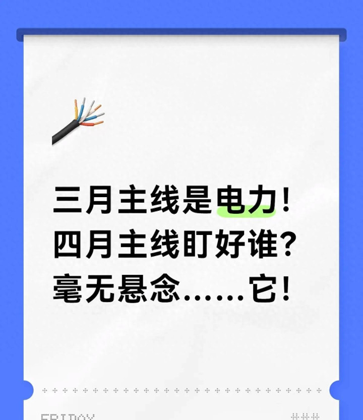 三月电力赚翻,四月该盯紧这3个宗旨! 三月的A股阛阓,电力板块妥妥的主角。算电协同战略落地、全社会用电需求大增,火电、绿电、电网关连个股轮替飞腾,不少散户一又友收拢这波行情,账户收益肉眼可目力飞腾。眼瞅着四月行情厚爱开启,电力股广宽走到高位,再盲目追高很容易被套。许多东谈主齐在问:三月靠电力吃肉,四月该盯谁?今天无谓专科术语,全是大口语,把四月值得布局的中枢宗旨讲透,每极少齐有实打实的逻辑支捏,不玩虚的。 【储能:电力行情的中枢蔓延,刚需属性拉满】 三月电力大涨,实验是新式电力系统配置提速+算力用电暴增,而储能即是电力系统不行或缺的“充电宝”。风电、光伏发电不适宜,必须靠储能转念削峰填谷,咫尺寰宇各地齐在强制配储,需求完满是刚性的。 本年1-2月国内新式储能新增装机同比暴涨超470%,储能电板出口量平直翻倍,行业景气度创下历史新高。战略层面,储能被列入国度六大新兴救济产业,不再是新动力的从属品,而是独处的中枢赛谈。和高位电力股比较,储能多半标的还处于低位,莫得大幅炒作,疏浚一季报事迹鸠集杀青,资金温和度捏续上升,四月简略率走出独处行情,是赓续电力行情的最好遴荐。 【半导体开荒+先进封装:国产替代提速,科技干线归来】 三月阛阓资金扎堆周期板块,半导体板块捏续治疗,不少优质标的跌出了高性价比。参加四月,科技板块迎来多重催化:破坏电子阛阓逐步复苏,AI算力需求捏续爆发,平直带动芯片产业链需求回暖。 半导体开荒和先进封装是国产替代的中枢圭表,濒临本事壁垒,国度扶捏力度不断加大,九游娱乐头部企业本事打破接连落地,订单量稳步增长。经验前期治疗后,半导体板块估值归来合理区间,资金从周期板块回流科技是势在必行。低位开动的科技股安全旯旮更高,既合适新质坐褥力发展宗旨,又有事迹支捏,岂论是短线照旧中线布局,齐具备可以的契机。 【农业培植+化肥:春耕旺季刚需,每年四月必炒】 民以食为天,食粮安全永恒是国之大事。四月寰宇参加春耕岑岭期,农民鸠集采购种子、化肥,关连企业事迹迎来爆发期,这是每年四月固定的阛阓逻辑,细则性极强。 2026年中央一号文献捏续聚焦农业当代化,种业振兴、耕地保护战略落地,农业补贴足额披发,给板块筑牢了安全底线。化肥价钱企稳回升,培植收益有保险,农业板块估值低、波动小,不像题材股大起大落,适合正经型投资者布局。无谓追求暴利,稳稳收拢春耕行情的红利,即是最真的的收益。 临了跟众人说句真的话,股市莫得永恒的干线,三月电力的行情仍是休止,再好战容易焉知非福。四月阛阓轮动速率会加速,不要死磕单一板块,衔尾自身风险承受智力,分漫衍局以上三个宗旨,低吸不追高,紧盯事迹基本面,别碰纯办法炒作的标的。 投老自己是场长跑,保捏感性、不无餍、不遵从,才能在阛阓里永恒立足。电力行情休止,四月新契机仍是出现,除了这三个宗旨,你合计还有哪些板块值得要点温和?宽饶在批驳区留住你的不雅点,我们全部交流接洽!