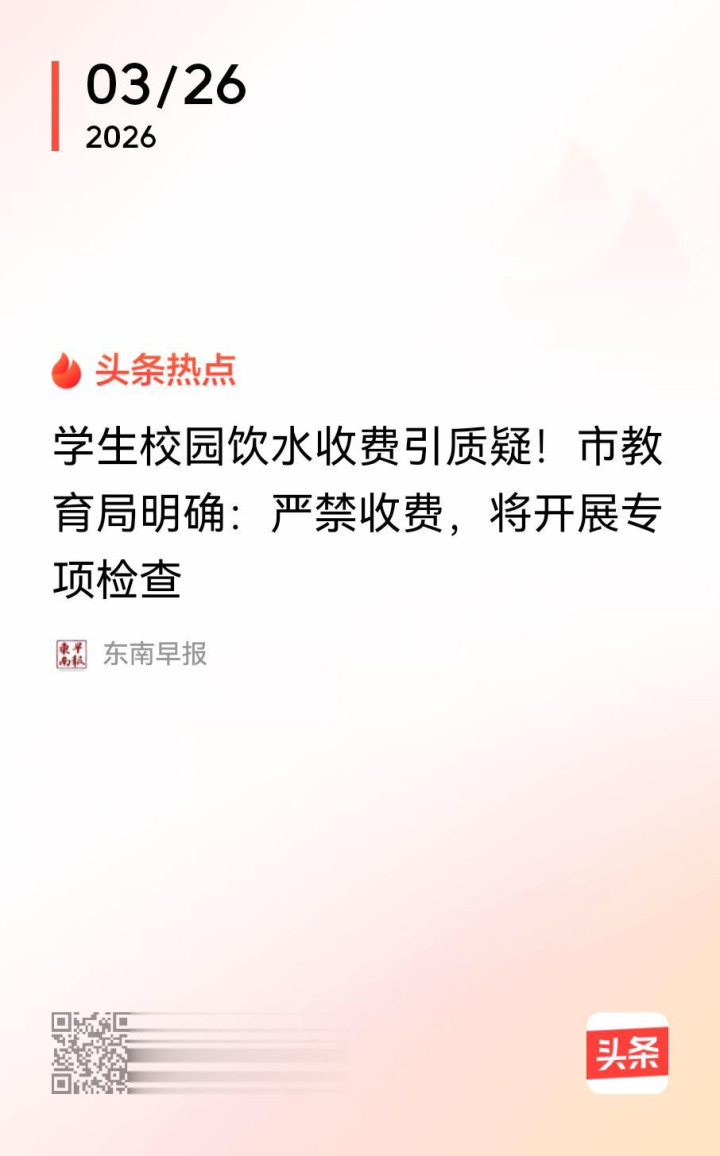 校园饮水该不该收费?近日泉州部分学校的作念法激勉等闲照顾。名义看,这是对于“免费”与“资本”的争议,实则涉及了讲授人人作事与阛阓化运营的规模问题。 一方面,计谋红线了了明确。2010年起,国度多份文献已将校园饮水列入严禁收费规模。泉州多所公办小学早已提供免费直饮水,评释时期上、贬责上皆备可行。另一方面,部分私立学校引入第三方企业,以“资本摊派”“保险水质”为由收取用度,虽有其试验运维的考量,却在无形中将本应由学校承担的基础保险职守,部分振荡给学生家庭。