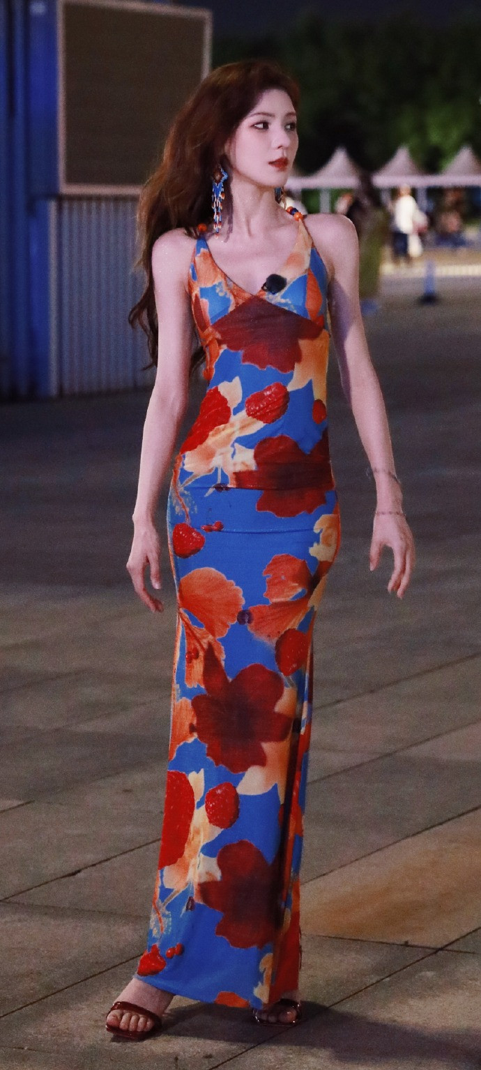张予曦的印花包臀裙,九游jiuyou明艳到发光