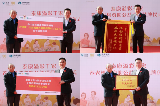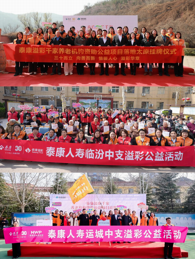 2026年3月25日,泰康东说念主寿山西分公司联袂泰康溢彩公益基金会,在太原、临汾、运城三地同步举行“溢彩千家”养老机构资助公益样貌挂牌庆典。 三地假想向养老机构捐赠价值34.65万元适老化成立及爱心物质,精确遮掩失能失智、半失能及活力老东说念主三类群体照护需求,用实质行径为“银发群体”托起幸福夕阳。这场高出空间的爱心联动,标记着泰康东说念主寿山西分公司在管事养老保障大局、践行企业社会包袱方面迈出坚实一步。 政企联袂启新程 爱心助老暖三晋 太原主会场庆典在太原市颐康养老院温煦举行。太原市万柏林区民政局局长李倬、副局长任娟,万柏林区慈善会主席李艳玲,泰康保障集团助理总裁、泰康溢彩公益基金会理事长应惟伟,泰康东说念主寿山西分公司党委布告、总司理宋恩光,副总司理朱振红、太原市颐康养老院院长张天生等嘉宾王人聚现场,共同见证公益样貌落地。