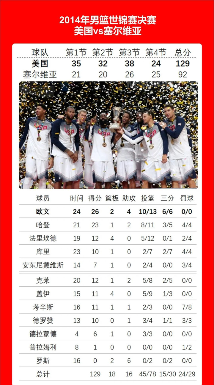 家喻户晓,好意思国篮球界一向喜爱奥运会,看不起天下杯。从2010年运行,好意思国队基本派出的都是二线明星或者干脆是新东谈主,一线巨头止境少,也只好奥运会才值得列位巨星罢休舒心直快的假期,雇主们也不会气得格式乌青。 2010年的世锦赛,一年级的库里,还没进过全明星的威少,还没拿过MVP的罗斯,全队独一巨星便是刚刚拿劣等一个得分王的杜兰特。9场比赛杜兰特场均22.8分,创造好意思国队队史记载。