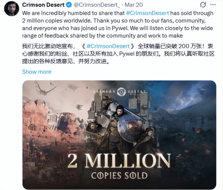 憋了快要七年的韩国大作《红色沙漠》终于是来了,它皆备是本年游戏圈最玄幻的存在。 游戏仅在预售阶段,就登顶Steam全球销量榜,首日发售全球销量打破200万份,Steam在线东说念主数峰值冲到 23.9 万。但另外一边却是Steam简中好评率首日跌破30%,社区里尽是翻车吐槽,B站唾手一搜,简直全是“翻车”、“劝退”的锐评,口碑和销量绝对走向两个顶点。