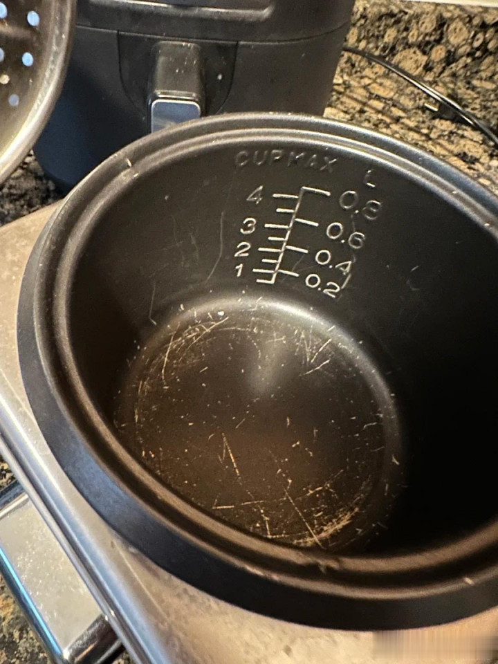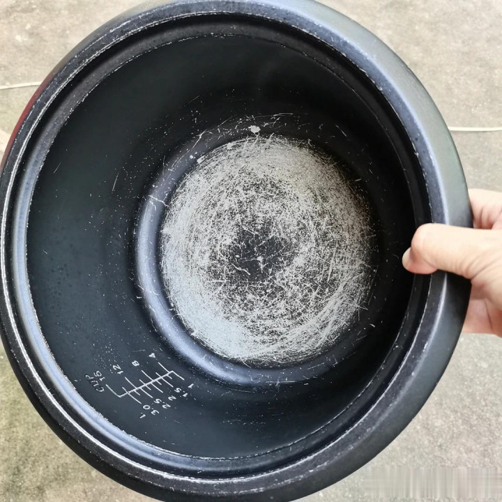 05.刮花的电饭煲 其实有许多电饭煲的内胆都是带涂层的,只不外咱们之前不知谈,而且清洁的时候还会用钢丝球,就算刮花也不紧要,而且还会一直使用。