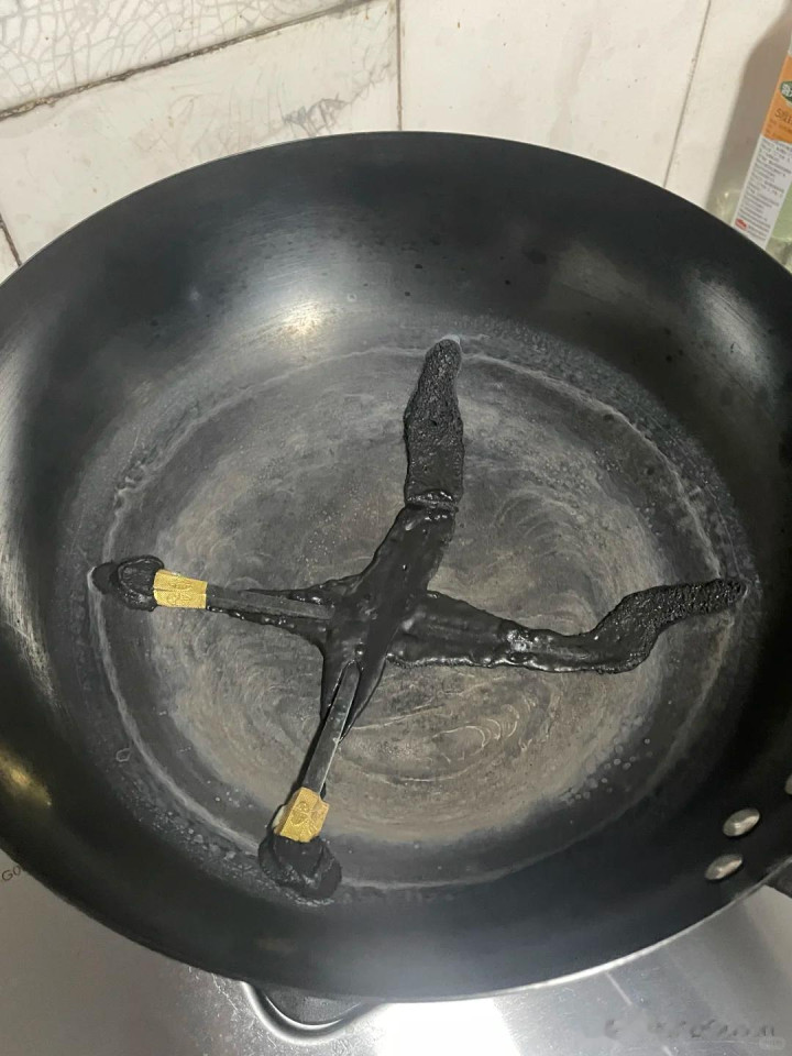 还有一又友家里莫得蒸屉,于是用合金筷子平替,成果开放锅的刹那间, 扫数这个词东谈主都懵了,合金筷子都化在锅里了。