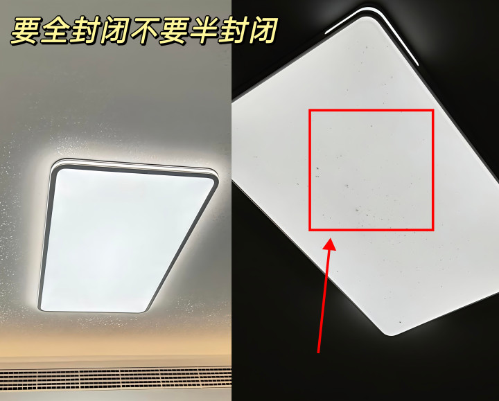 吸顶灯厚度<5cm 另外,灯具的顶部要选一体化密封筹谋的,全密封筹谋防蚊虫灰尘,里面不进脏东西,无谓一样拆洗;独一灯罩和底座有流毒、没密封、不是一体阻塞,小飞虫、灰尘就能钻进去,时间深切灯罩里全是虫尸和灰,很难清算。