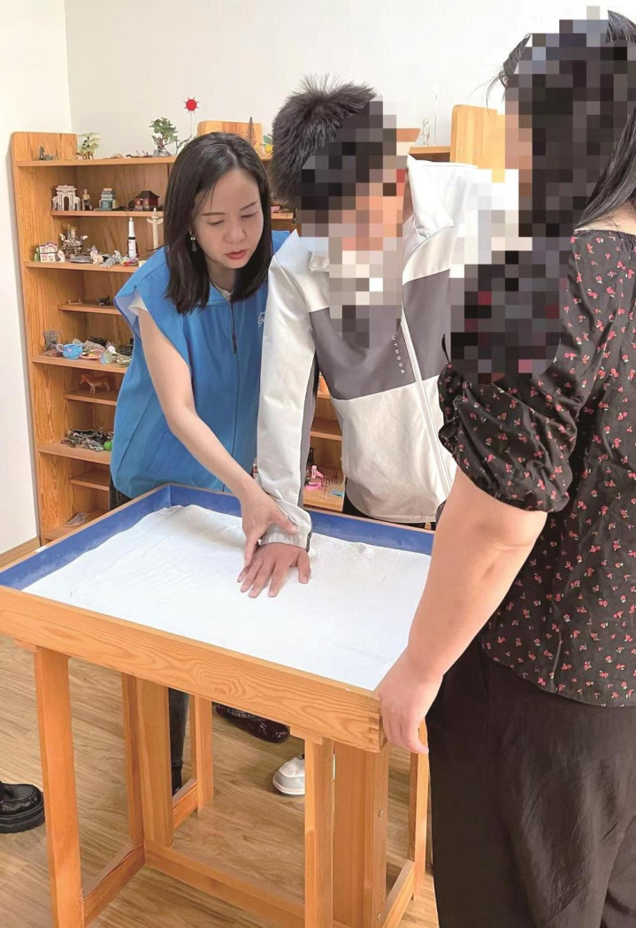 曹胜男(左)给帮教对象作念心境教导。